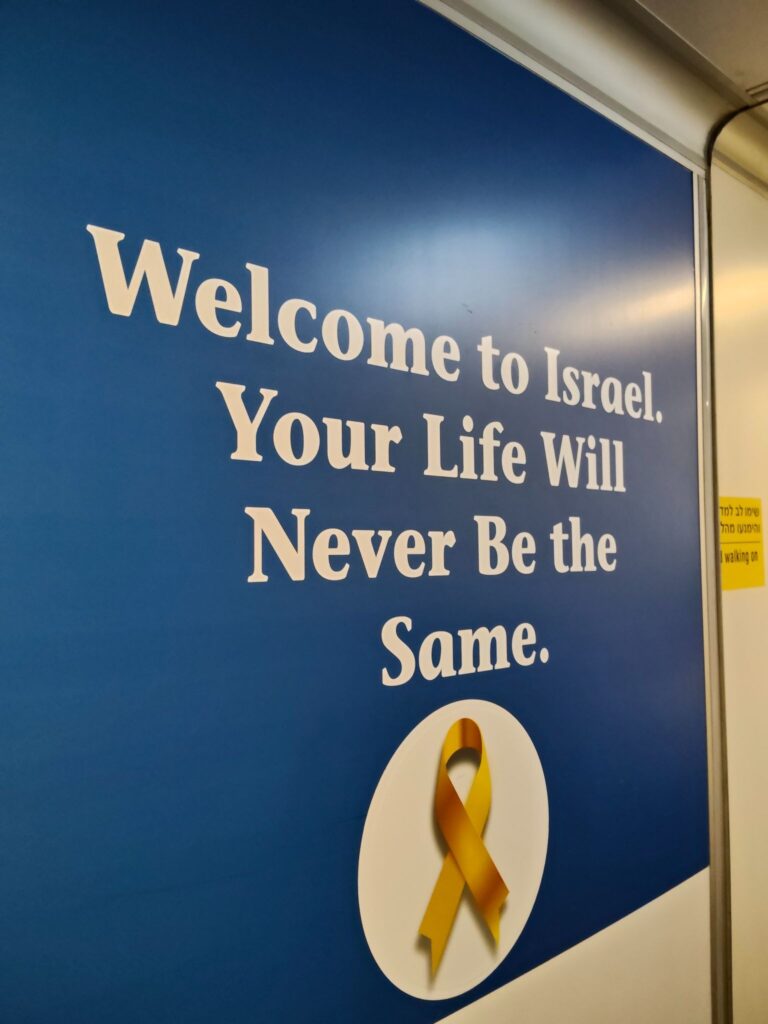イスラエルの飛行機から乗り降りする時に、ボーディングブリッジ内で目にするこの看板。Your life will be never be the same. いや~本当にまさにこのとおりで、イスラエルにいると、昨日と今日が同じ保障はなく、そしてまた明日が明日として連綿と続く保障もないことを体感しています。刹那的に生きている人が多いのも納得です。