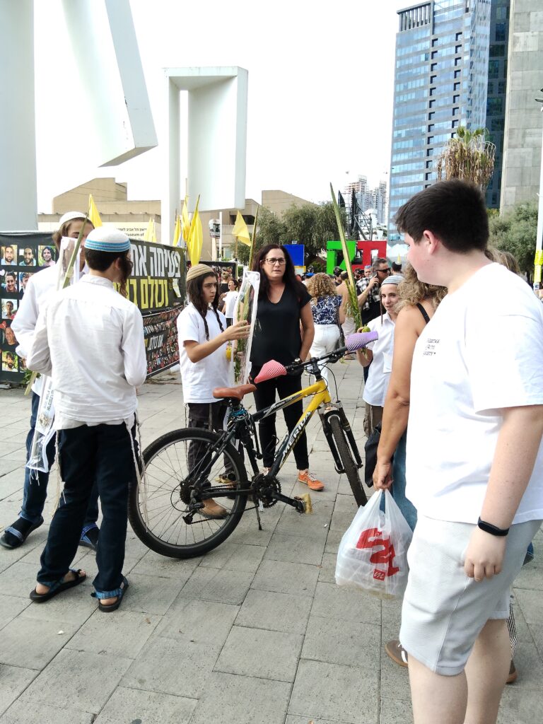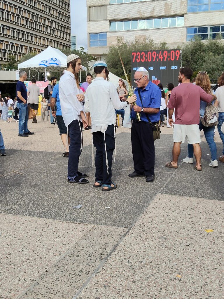「Happy Holidays!」を、「ハグ・サメアハ!」とヘブライ語で声を掛け合うのですが、今日の人質広場の雰囲気は、まさにChag Sameach!!いつもの殺伐とした雰囲気や怒号飛び交う重々しい雰囲気ではない、なんとも軽やかな、人々の祈りや慈愛に満ちた空間となっていました。