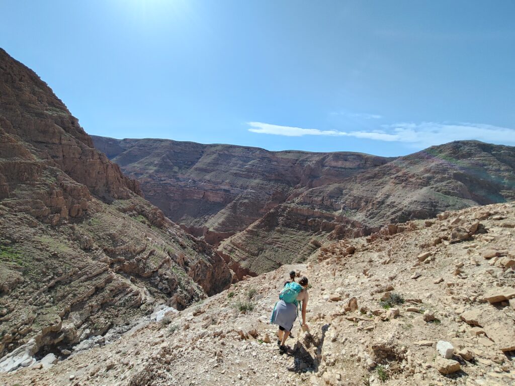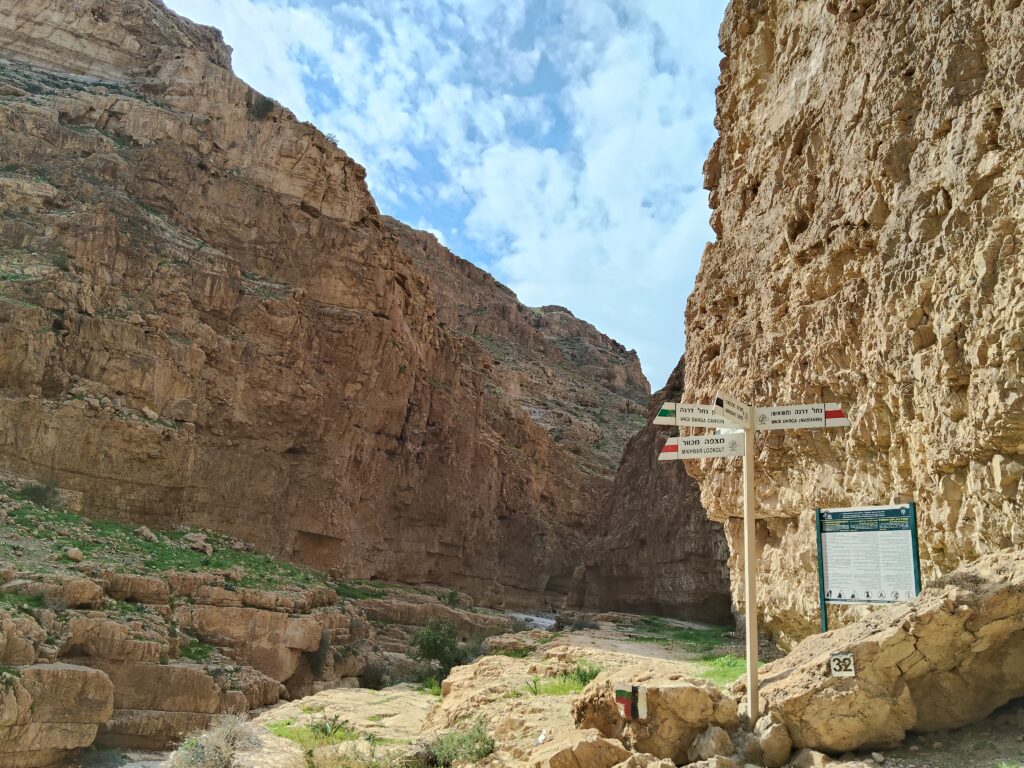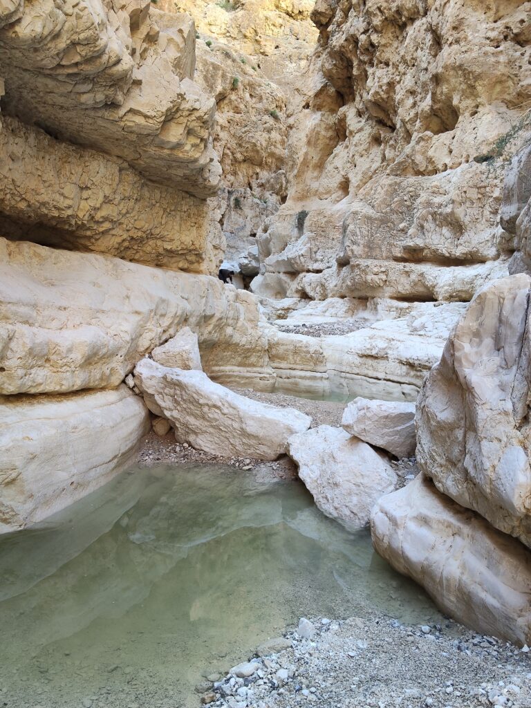 続いては、「メツォケ・デラゴット」という、死海(デッド・シー)を見下ろせるロケーションに位置するハイキングスポット。こちらはハイキング大好きな友達に誘われて「初心者・ファミリー層向け」と言われて一緒に行ったのですが、結果としてはハイキング(のんびり会話して歩く)の域を超えたクライミングスポットでした!