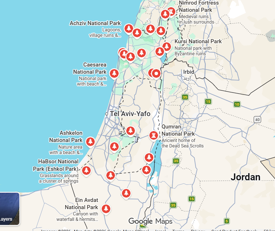グーグルマップ上で、”national park in Israel”と検索して探すことも可能です。この二年弱で、数多くの国立公園と自然保護区を訪れたのですが、その中でもテルアビブから行きやすいところ&印象に残ったところを厳選してご紹介します!